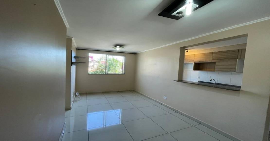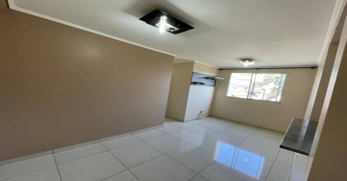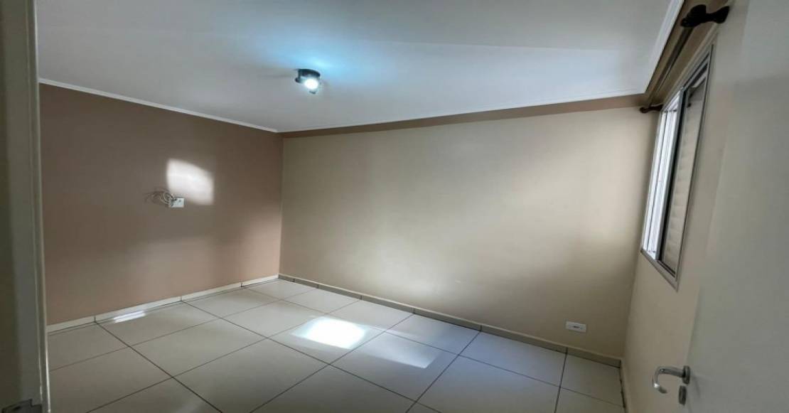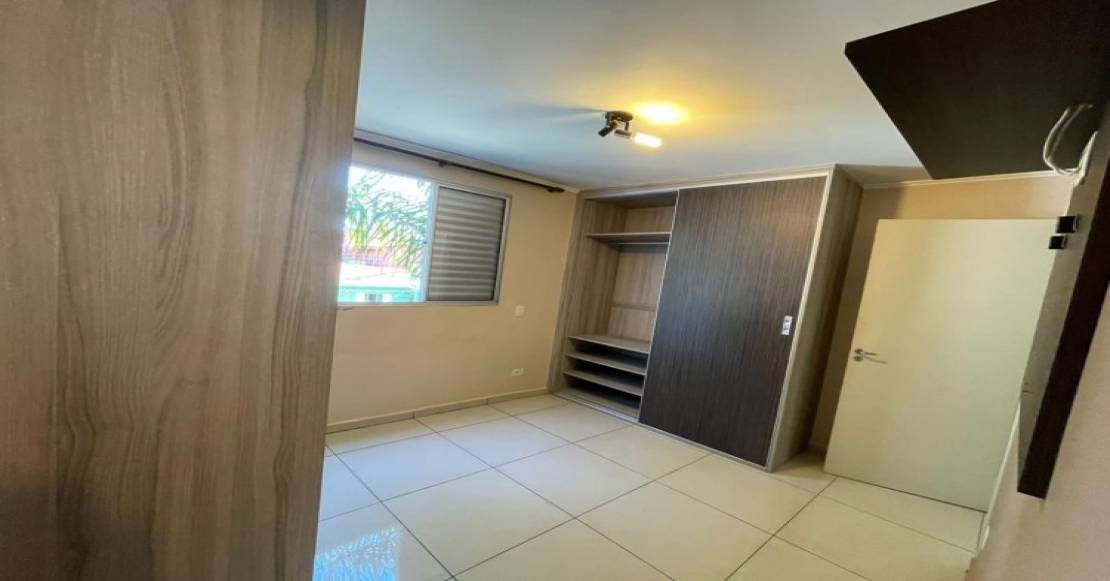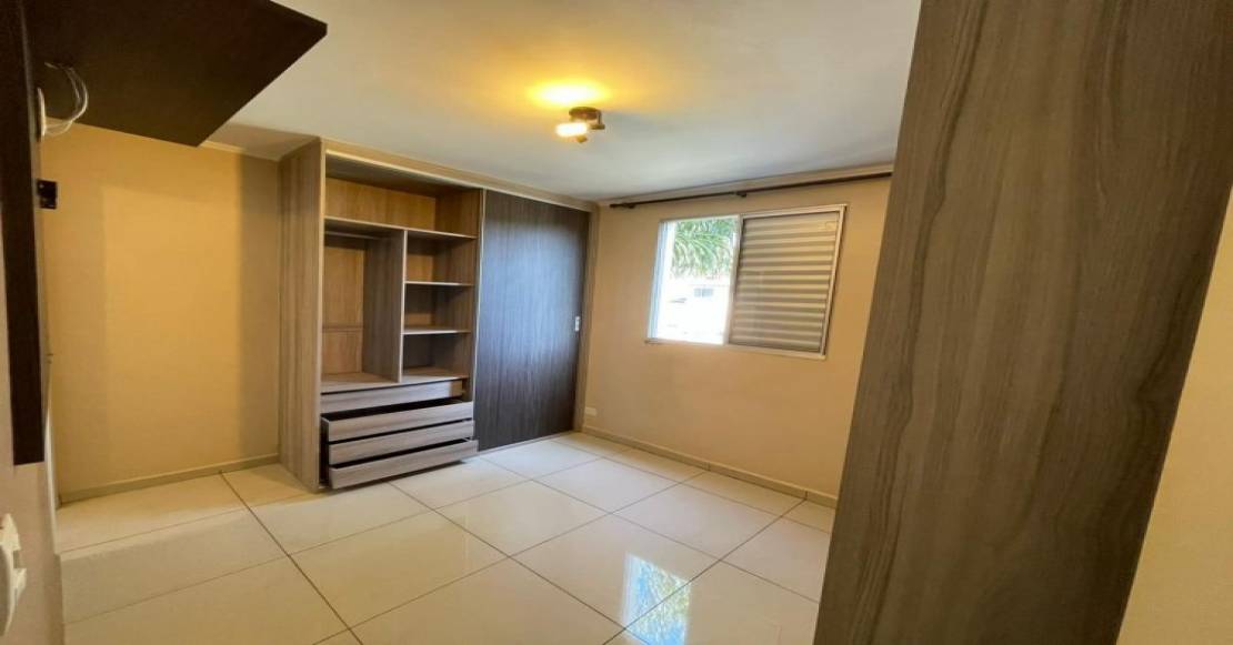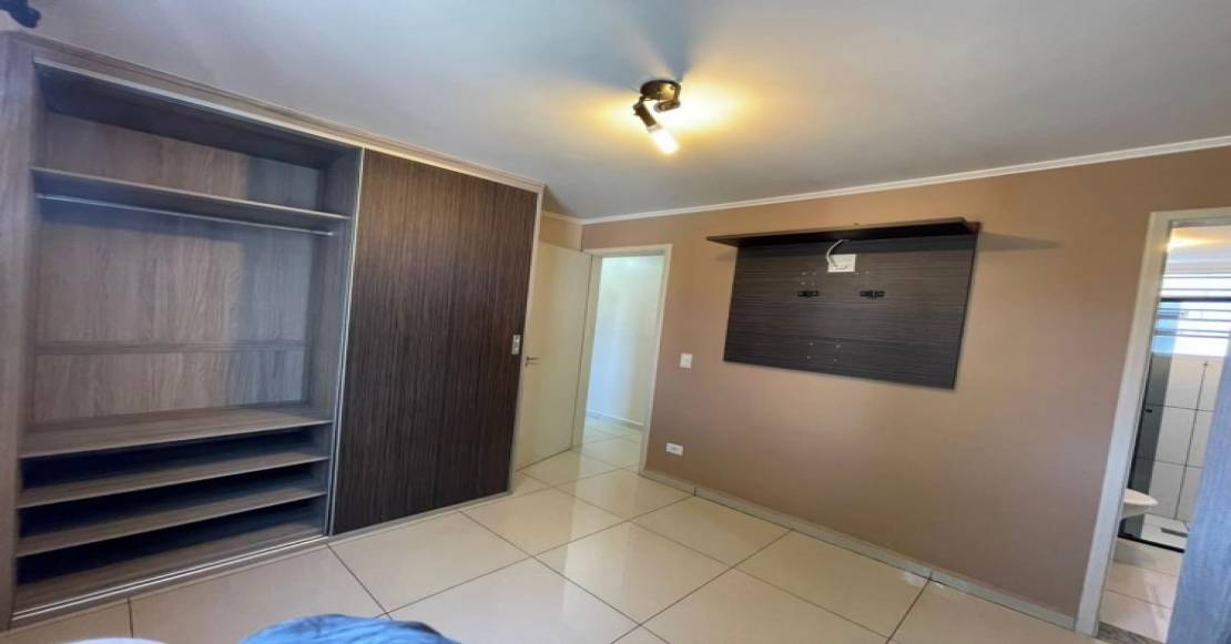 Apartamento com móveis planejados em todos os ambientes com exceção do terceiro quarto que está vazio.